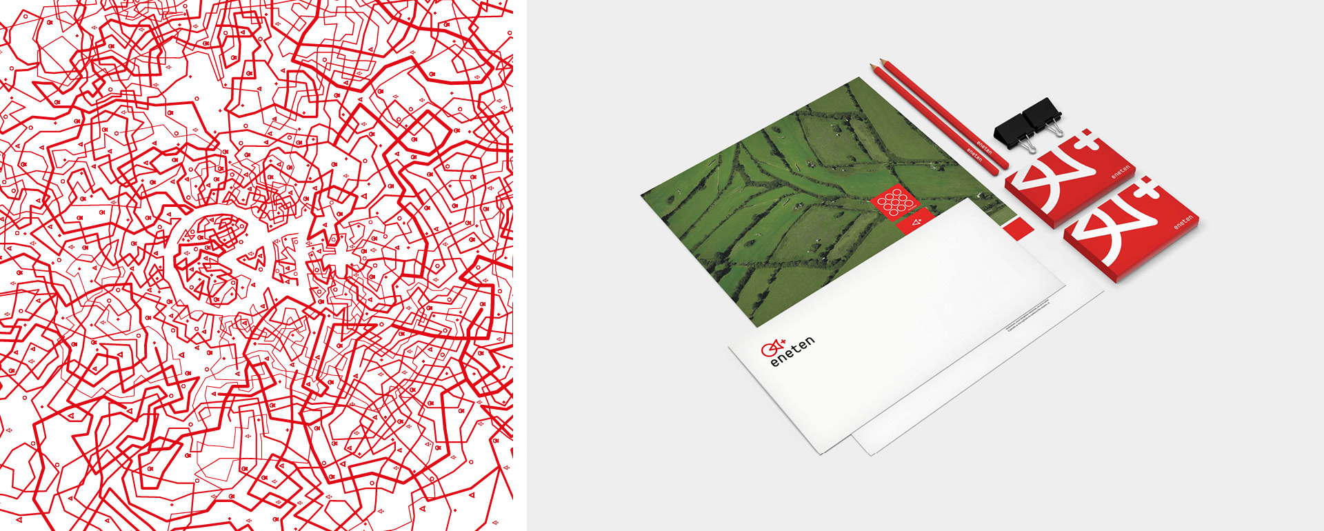 Nous avons travaillé à la définition du nom, du système d'identité et de la papeterie. La police d'Eneten est en minuscules avec des formes arrondies mais avec des lignes droites et simples, sans majuscules, ornements ou effets (ombres, relief ... italiques). L'approche est humble et marque une approche axée sur les résultats. Ce minimalisme est le signe d'une réputation acquise et d'une compétence reconnue.